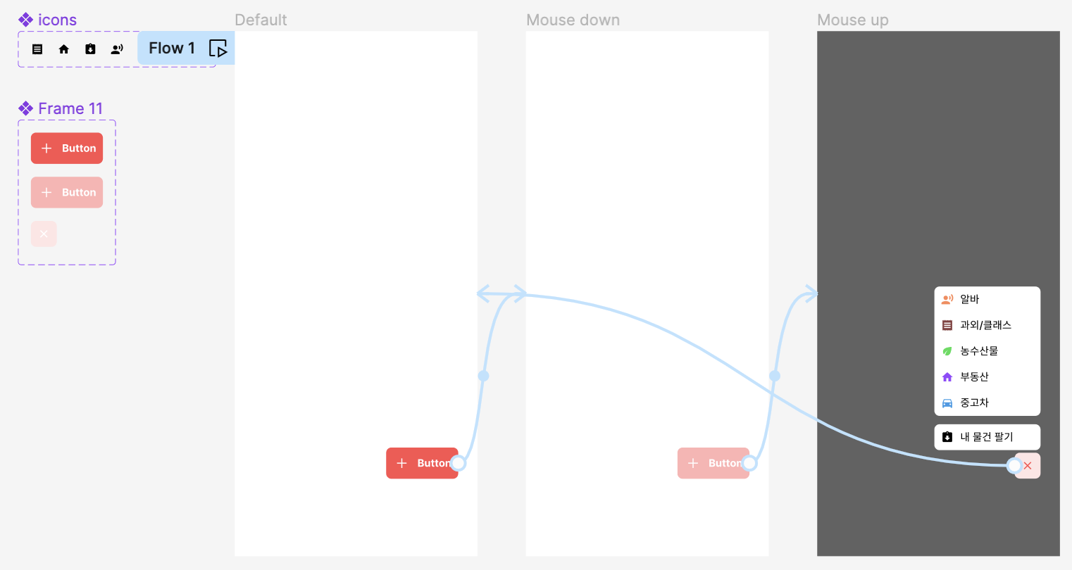 프로토타입 트리거-액션도 설정을 while pressing, mouse up 으로 진행했다.